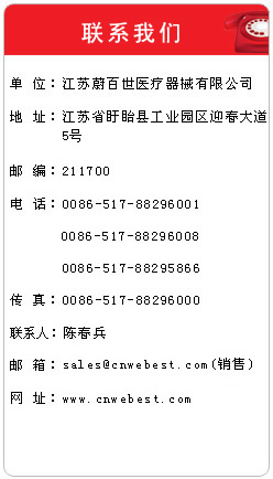 聯系人:陳春兵 地址:江蘇省盱眙縣工業園區迎春大道5號 郵編:211700 互聯網藥品信息服務資格證書號:(蘇)-非經營性-2023-0029 醫療器械投拆舉報電話:12315 電話:0086-517-88296001 88296008 0086-517-88295866 傳真:0086-517-88296000 網址:www.cnwebest_com.gvue.cn E-mail:sales@cnwebest_com.gvue.cn(銷售) 后臺管理 郵箱登錄 備案號:蘇ICP備17002214號-1 |